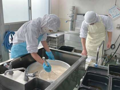 カラメルソース、卵や牛乳を混ぜ合わせた液など