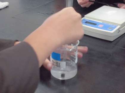 砂糖とミョウバンを少しずつ水に溶かしました。