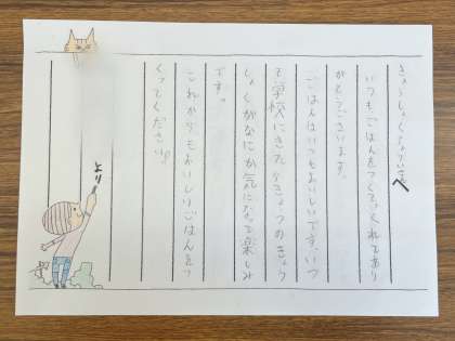 【コッペパン、マーガリン、牛乳、カレーうどん、はくさいの甘酢あえ、りんご】