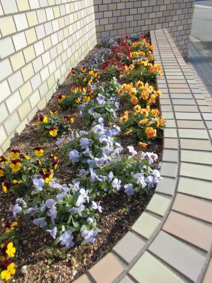 たびたび、お伝えしています「正門前の植え込みの花」の様子です。