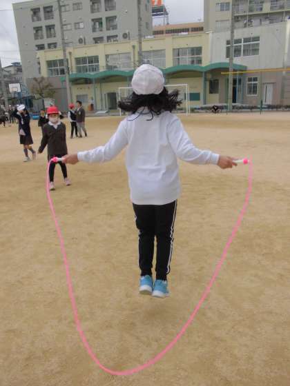今月1月は「縄跳び月間」で、縄跳びに励んでいる子を多く見ます。