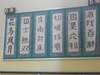 6年生の毛筆作品「四字熟語」の書き初めです。