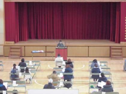 保護者を対象に、体育館で、「入学説明会」を実施しました。