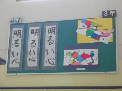 書写や図画工作の学習時間に作成した作品を掲示しています。