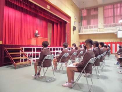 今日3月16日(水)、5・6年生が体育館に集合して、