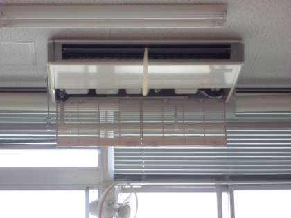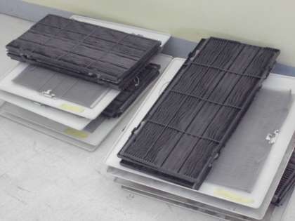 管理作業員が、1シーズンフル稼働だった空調機のフィルターを外して