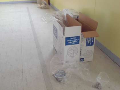 教室にある古くなった扇風機を交換しています。