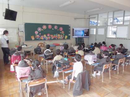 月曜日の朝は、「児童朝会(ビデオ朝会)」から、始まります。