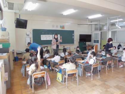 学級担任から問いかけに、「ピン」と手をまっすぐに伸ばして