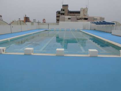 本校の「プール」は、「屋上プール」といって体育館の上にあります。