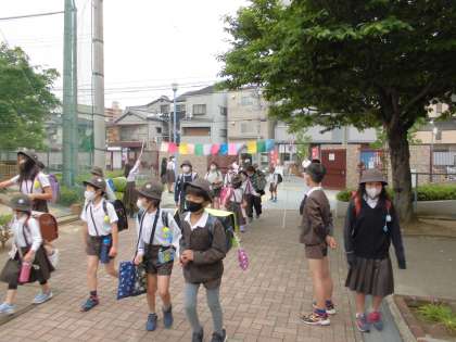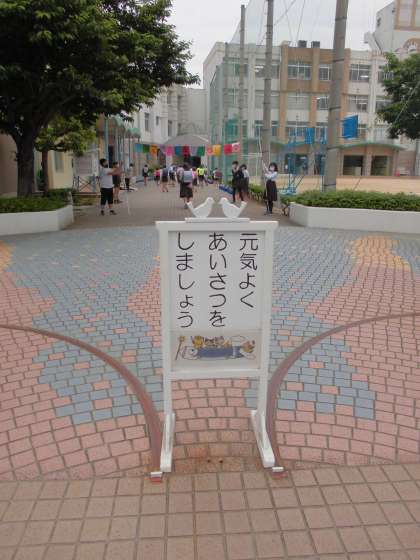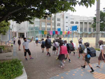 代表委員会の子どもたちが、登校してくる子どもたちと