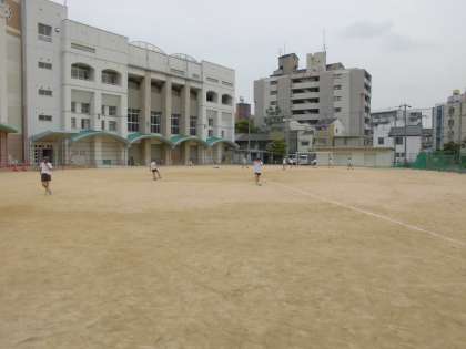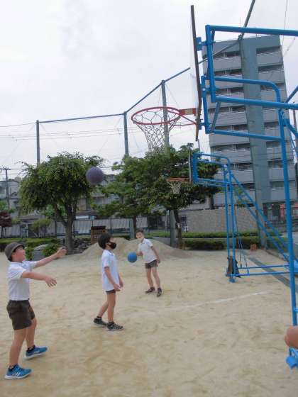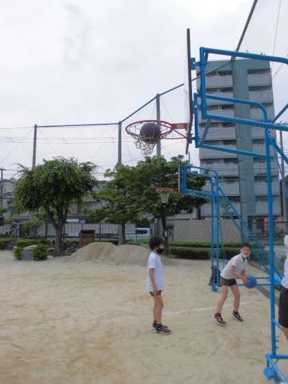 バスケットボールをしてみんなと遊ぶ高学年男子を発見。