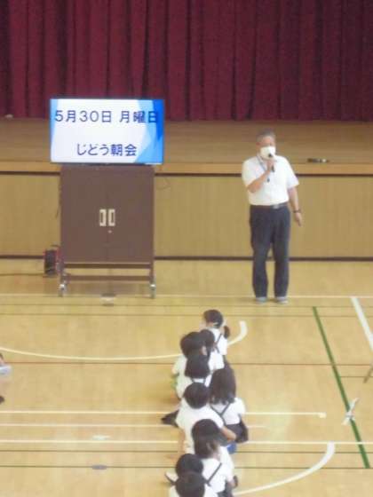 今日5月30日(月)の「児童朝会」は、全校児童が