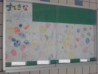 玄関掲示板(3年生・図画作品)「素敵なシャボン玉」
