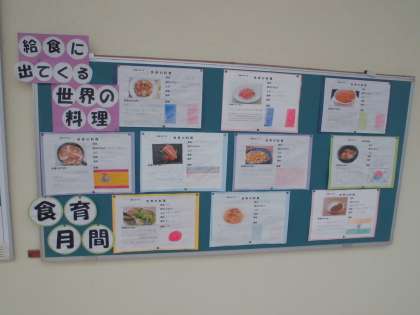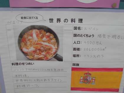 給食委員会の活動で、「学校給食に出る世界の料理」を