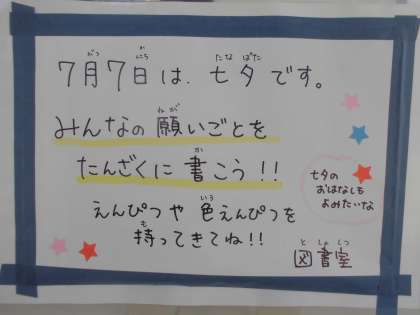 今は、願い事を書いた短冊を掲示しています。