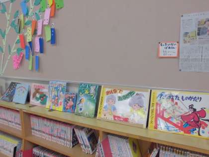 学校図書館では、季節に合った飾りつけをしていますが、