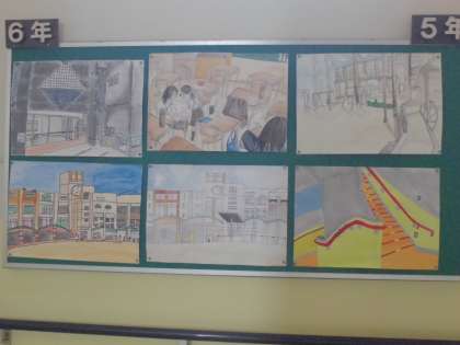 6年生の図画作品、校内のどこかの景色です。