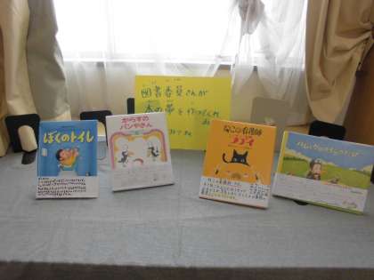 作成した「本の帯」を展示しています。(写真中・写真下)