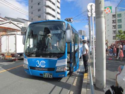 よく目立つ真っ青なバスに乗って、8時に出発しました。