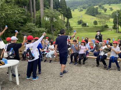 登山の成功をお祝いして、ジュ〜スで「乾杯〜!」