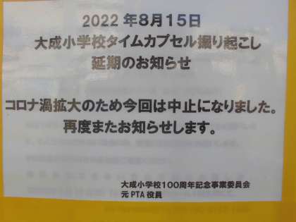 タイムカプセル掘り起こしイベント「延期」