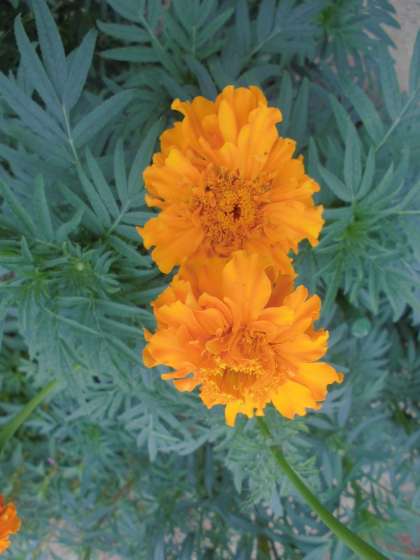 「マリーゴールド」が夏の間にずいぶん背丈が大きくなり、