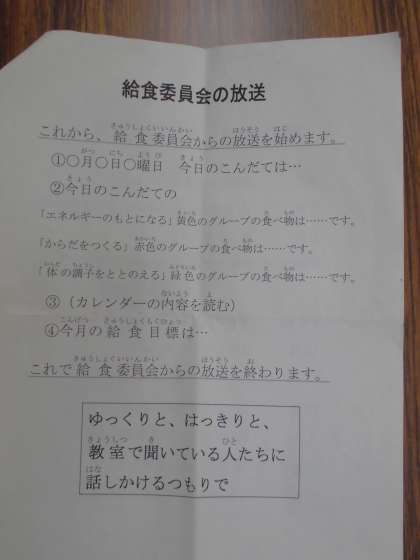 給食の時間に、職員室の放送設備を使って、