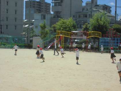 昼休みは、運動場で遊ぶことができました。