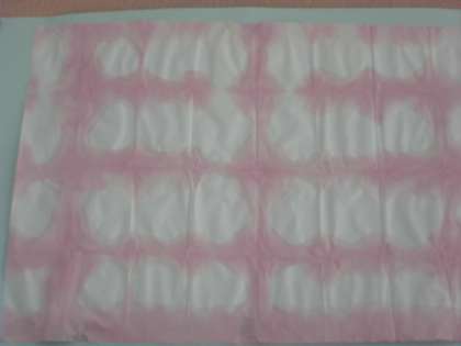 和紙を折って、折った和紙の端を色水につけて広げると…