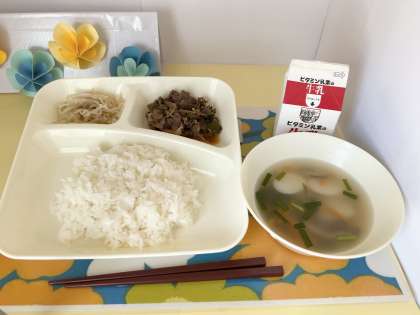 【ごはん、牛乳、プルコギ、トック、もやしの甘酢あえ】