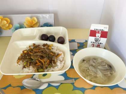 キャベツときのこのスープ、ぶどう[巨峰]】