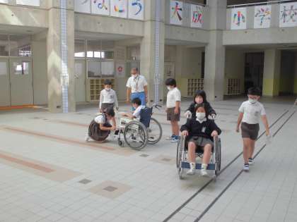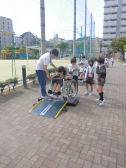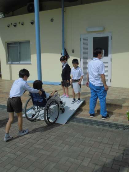 坂道は、後ろ向きで車椅子を進めることなどを学びました。