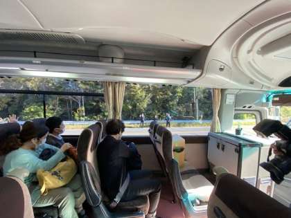 貸し切りバスは、子どもたちを乗せて、