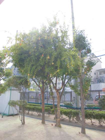 運動場の西端に、さまざまな樹木が植わっていますが、