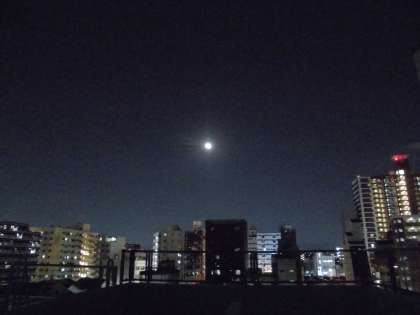 屋上から、東の空に、はっきりと「欠け行く月」を