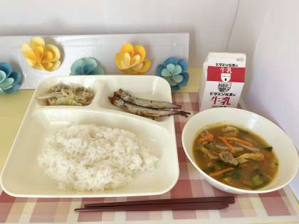 【ごはん、牛乳、焼きししゃも、和風カレー汁、