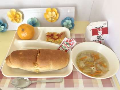 【おさつパン、牛乳、ツナポテトオムレツ、