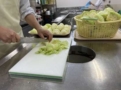 野菜は包丁で手切りのものと、スライサーを使って切るもの