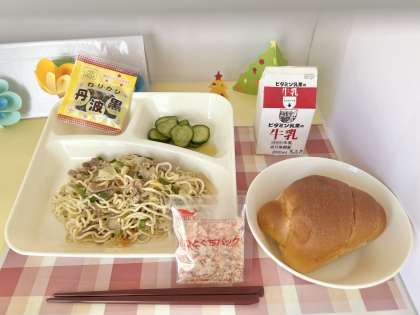 【こくとうパン、牛乳、和風焼きそば、