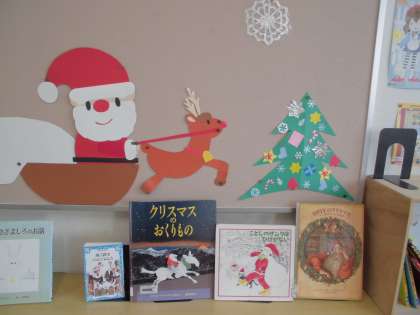 季節の掲示物「クリスマス」の飾りつけの下には、