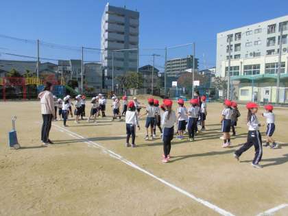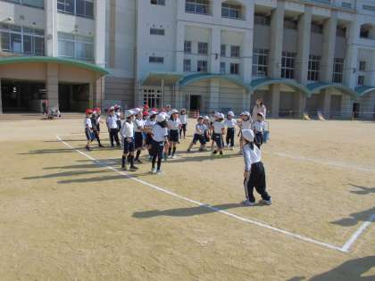 昨日12月8日(木)の3時間目、1年生は、運動場で