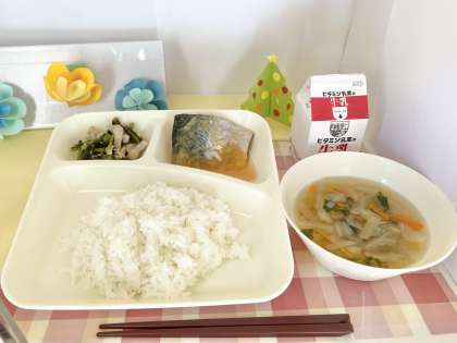 【ごはん、牛乳、さばのみぞれかけ、すまし汁、