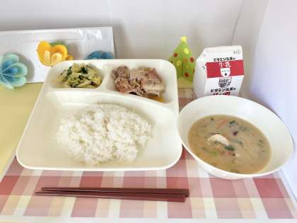 今日は、さつまいものみそ汁が登場しました!