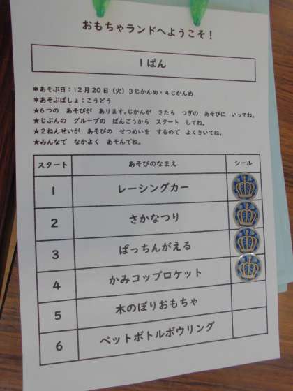 6つの遊びのコーナーがあり、1年生を招待しました。