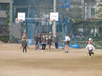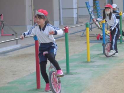 広い運動場で、いろいろな遊具を使って、それぞれ