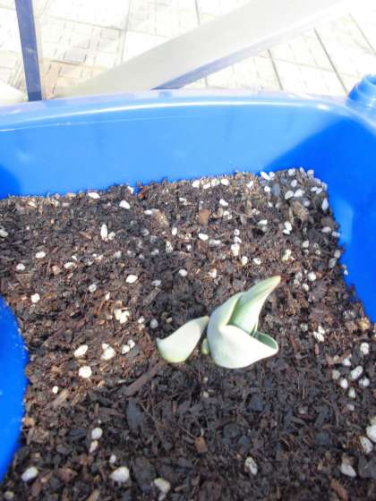 芽が2つ出ている植木鉢を見つけました。