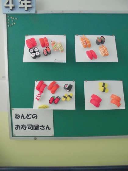 4年生 図画工作の作品【粘土の「お寿司屋さん」】