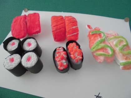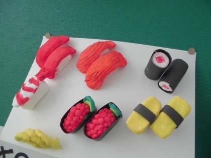 4年生が、粘土で作成した「お寿司」です。