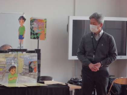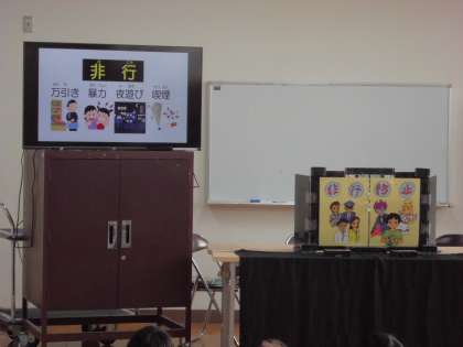 内容は、ベープサートを用いた万引き防止教室で、